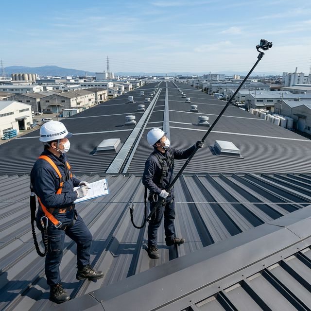 工場・倉庫の屋根について、判断に必要な情報を整理します。一次診断(予約制・月3件まで)の結果報告まで費用はかかりません。